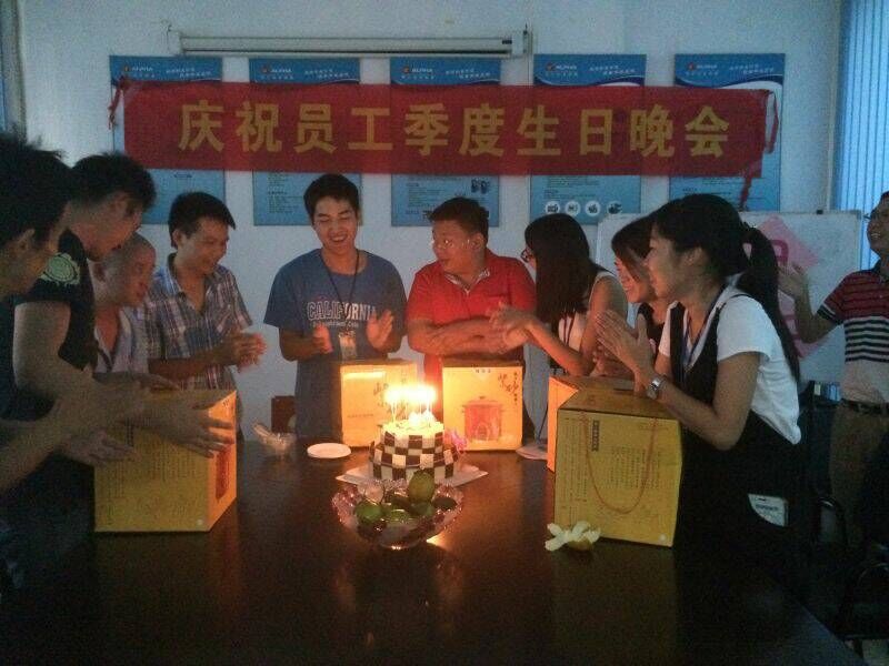 金秋九月,是收獲的季節(jié),同時(shí)也迎來了信杰第三季度生日會(huì)。2015年9月26日下午4點(diǎn)半,第三季度員工生日會(huì)在信杰公司二樓會(huì)議室舉行。大家都放下手中的工作,忙里偷閑地為幾位壽星送上了生日的祝福,會(huì)場上洋溢著歡樂的氣氛,期間同事們不僅對(duì)“壽星”們表達(dá)了聲聲祝福,更為“壽星”唱響生日歌,希望壽星們?cè)诮裉焖S的愿望都能一一實(shí)現(xiàn)。壽星們?cè)S愿、切蛋糕,“壽星”還收到公司送的驚喜禮物一份,大家情不自禁地歡騰起來,一起笑著、說著、合影留念,興奮之情溢于言表。由于明天中秋節(jié),公司給每位員工都發(fā)放一盒月餅和一份過節(jié)禮金,活動(dòng)期間洋溢著同事們的歡聲笑語。