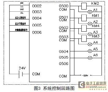 控制電路如下圖3所示,SB1控制系統(tǒng)的啟動(dòng),SB2控制系統(tǒng)的停止,當(dāng)水泵出現(xiàn)過(guò)載時(shí),A5燈亮。當(dāng)變頻器出現(xiàn)故障時(shí),A6燈亮。A1、A2分別為泵1的變頻、工頻運(yùn)行指示燈,A3、A4分別為泵2的變頻、工頻運(yùn)行指示燈。