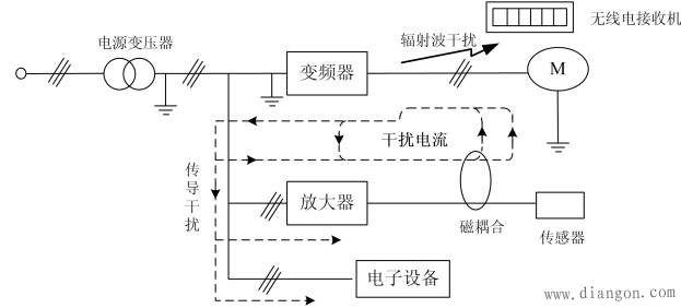 圖4變頻器干擾的主要傳播途徑
